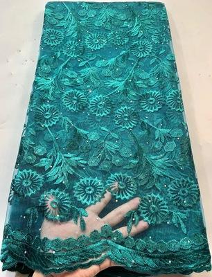 Лазерно нарязване на африканската полиестерна дантелена тъкан с пайети Нигерия дантели, подходящи за модни дрехи и декорация
