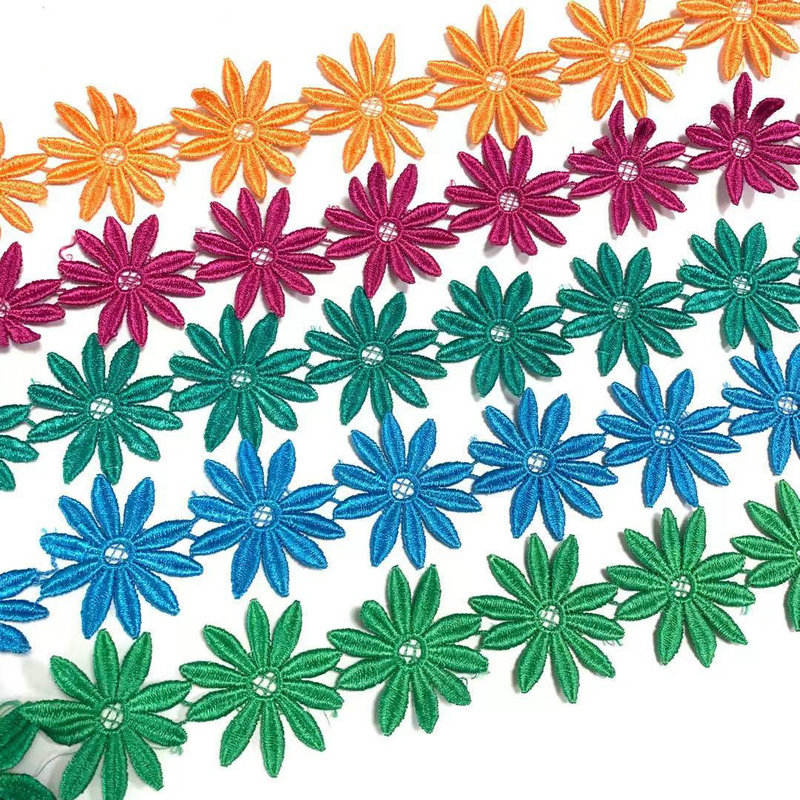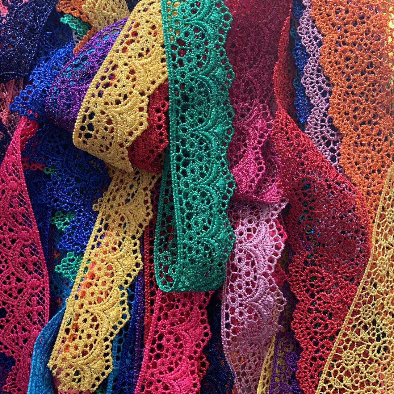 Персонализирана полиестерна дантелена тесна бродерия дантелена тапицерия многоцветна многоцветна, изработена от висококачествен полиестер, с фина изработка на бродерия, тя разполага с богати цветове и регулируема ширина. Подходящ е за украса на женското облекло, детските дрехи и предметите за домакинството
